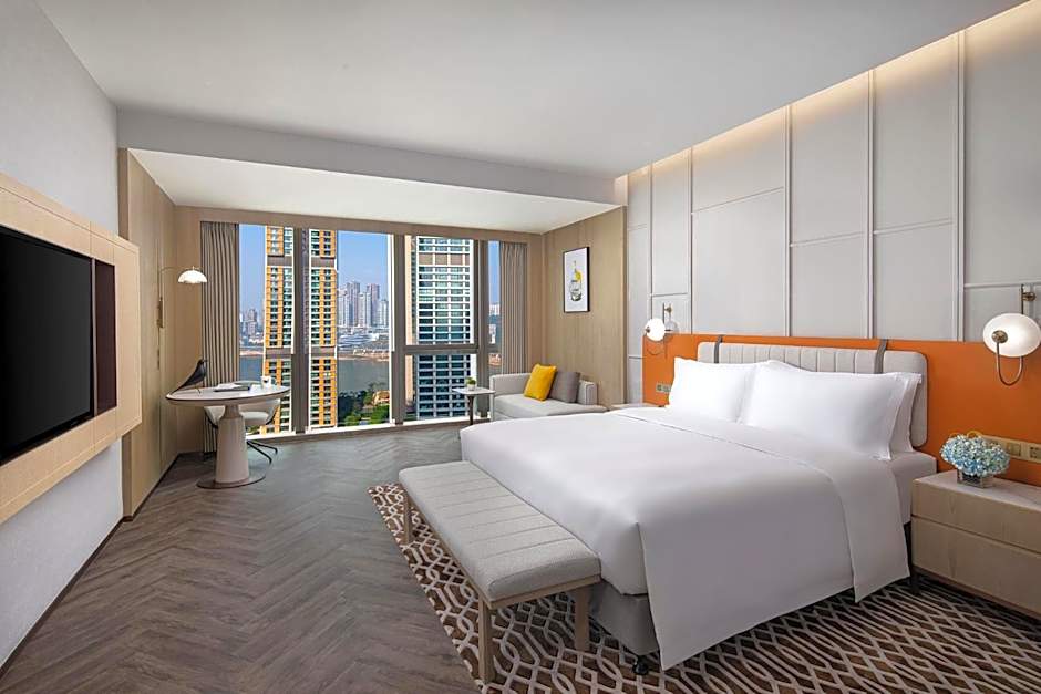 A diverse room lineup awaits, ranging from Standard and River View options to Premium configurations and suites. Choices include Standard, 2 Twin; Standard, River View; Premium, King; Premium, Twin; Premium Twin Room with River View; Suite, 1 Bedroom, River View; Grand King Room with River View; and more. Each option provides comfortable space to rest after a day of sightseeing along Chongqing’s riverfront, with many rooms offering river-facing views.